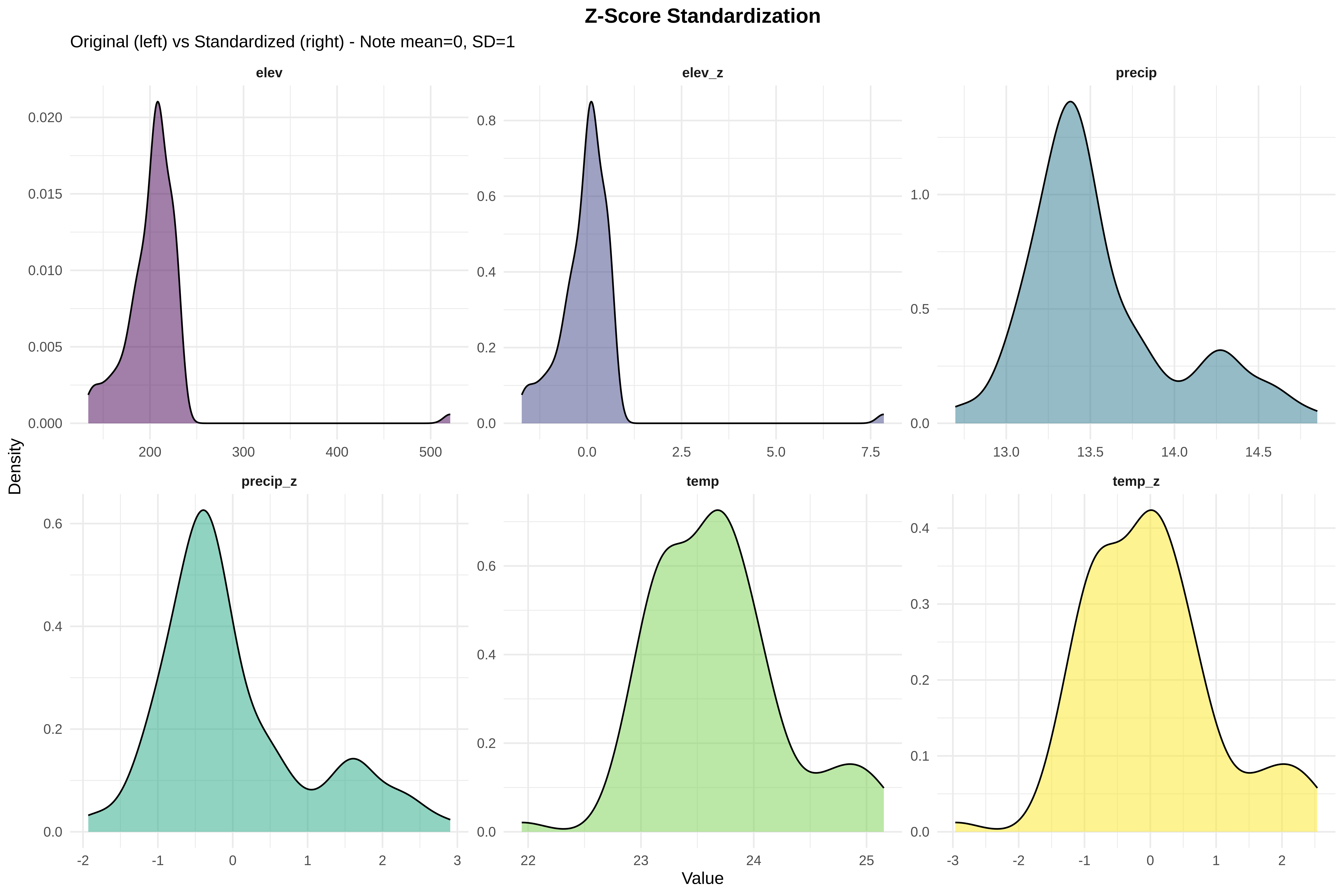 • Z-score standardization: All variables now on same scale (mean=0, SD=1)